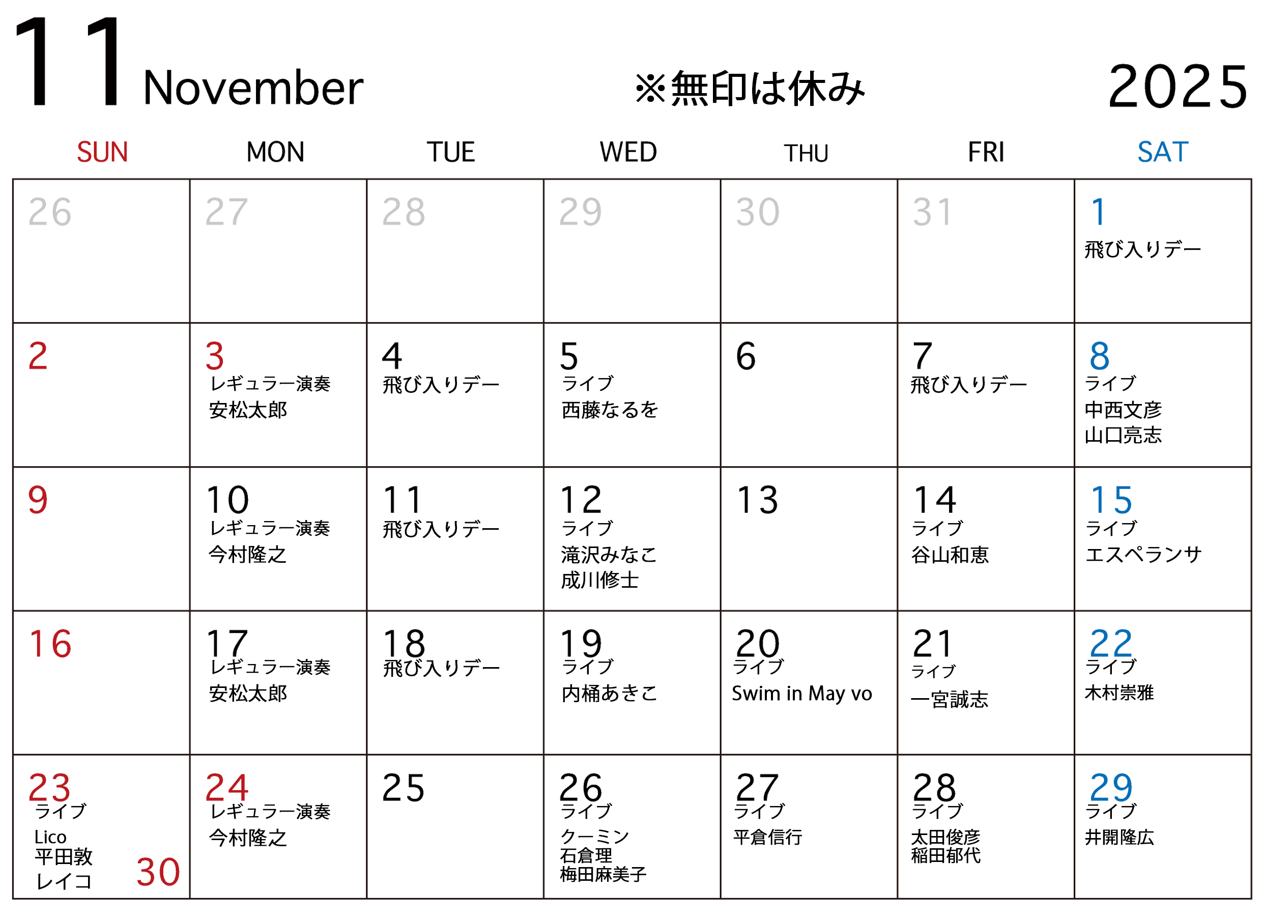 11月のスケジュール
